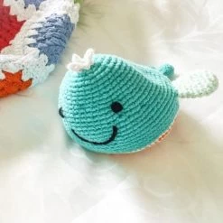 Hochet Baleine Turquoise Organic 15cm Pebble® Maille Crochet Coton Bio – Hochet BĂ©bĂ© Bio