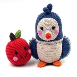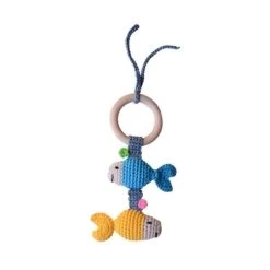 Hochet En Crochet Coton Bio Pour Poussette Poussin Bleu-Jaune APunt Barcelona®- Hochets Bébé Bio