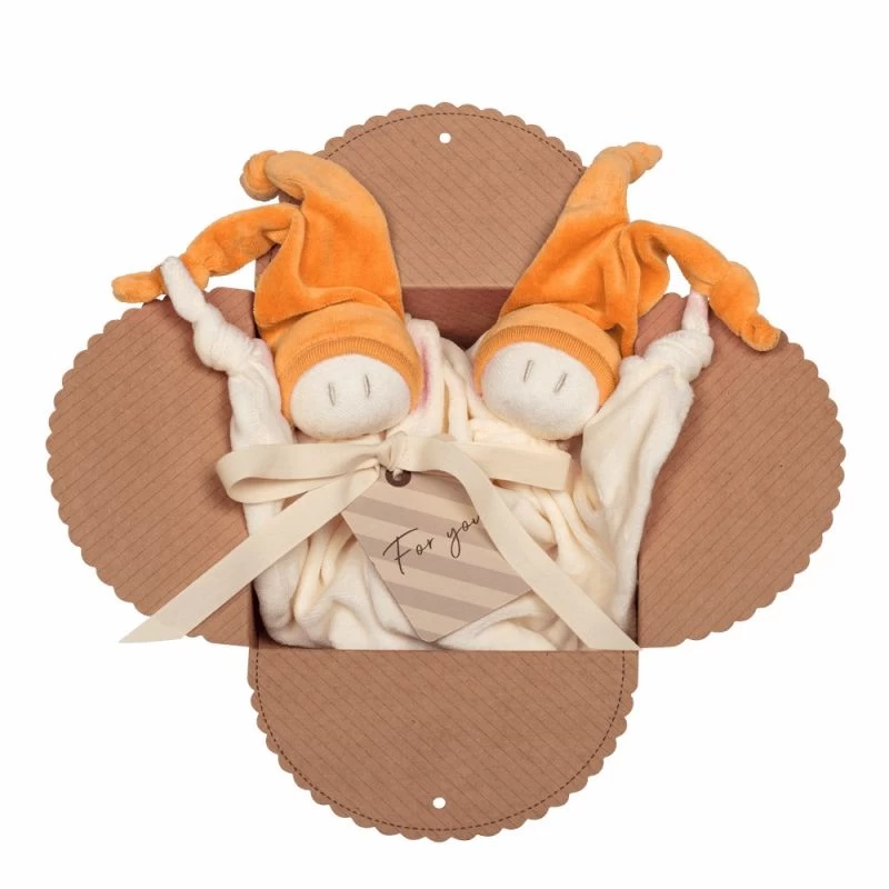 ✎ Les Coffrets 2 Doudous Keptin-Jr Coton Bio Zmooz Mandarine Orange Large 24 cm détails