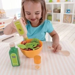 Pour les petits à partir de 36 mois, éveil émotionnel avec cet ensemble d’accessoires Dinette Aliments Salade du Jardin en Bois Hape, pour composer de belles salades et accompagner les repas du dimanche avec ses amis, sa maman et son papa,… Permet de compléter les jouets dinette cuisine, d’aliments supplémentaires et de vaisselle. Les jouets d’imitations sont idéales pour favoriser les jeux de rôles, la construction de soi et de sa vie sociale…