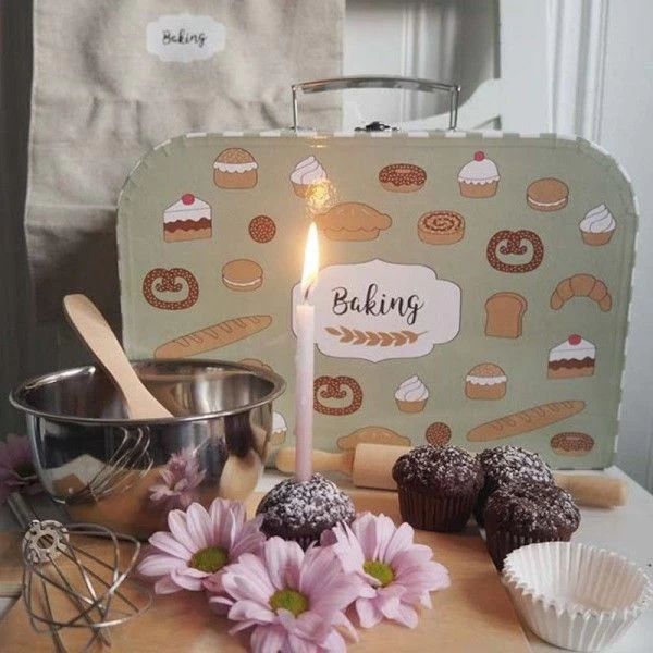 Ensemble de cuisson avec 13 pièces différentes qui vous garantiront des heures de plaisir ! L’ensemble comprend un rouleau à pâtisserie, un bol, un fouet à ballon et bien plus encore. Tout soigneusement emballé dans la valise de rangement. Et le meilleur de tous, il peut également être utilisé pour une vraie pâtisserie, car le moule à cupcake peut parfaitement fonctionner dans un vrai four!
