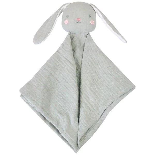 Pour les petits écolos, douceur et réconfort en compagnie de ce joli Doudou Plat Carré Lange Mousseline de coton bio Lapin Albetta® 35cm. Un doudou lapin en mousseline de coton bio, couleur gris, qui a de grandes oreilles avec un visage brodé à la main et des détails à rayures. Un incontournable pour tout petit.. Un petite tête molletonnée pour bientôt lui dévoiler des petits secrets. Bébé trouvera réconfort et découverte de sensations diverses. Ce lapin sera un compagnon câlin parfait pour tout petit à l’heure du coucher !