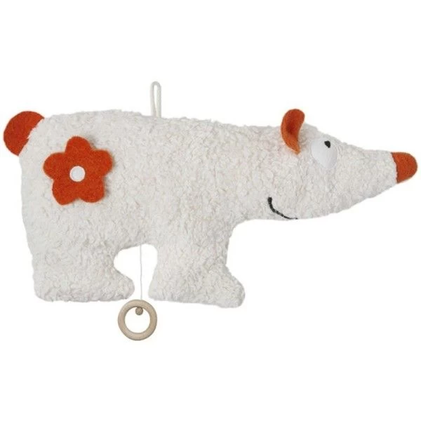 ✎ Les Doudou Plat Musical Coton Bio Ours polaire Blanc & Orange  39 cm Efie® détails