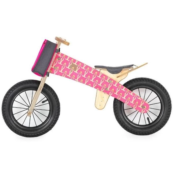 Pour les petits riders dés 36 mois et jusqu’à 5 ans et plus, éveil physique et émotionnel, avec cette fabuleuse Draisienne en bois Dip Dap® Classique avec des Ours peints ‘Draisienne Dip Dap® 12 pouces Ours Roses selle grise avec sacoche’. Une belle Draisienne Dip Dap® reprenant les sympathiques bouilles de gros ours écolos touts roses, probablement issus de la forêt d’ou provient le bois contreplaqué de boulot utilisé pour les fabriquer, …. Les draisiennes ou Runbikes Dip Dap®, sont particulièrement bien conçues, et élaborées. La fabrication en contreplaqué de bouleau et les matériaux de haute qualité utilisés pour les équipements, en font un excellent produit. Les draisiennes sont des vélos sans pédales qui permettent de développer l’équilibre, appréhender la vitesse et les distances et se promener partout dans la maison, la terrasse ou à l’extérieur avec papa et maman. Dés 36 mois, selon la taille de l’enfant elle s’utilise en position basse (assise 36.0 cm), puis à l’age de 4 ou 5 ans il suffit de monter l’assise jusqu’à 43.0 cm. Légères et maniables les draisiennes Dip Dap® disposent d’un angle de direction réduit pour éviter les changements de direction trop importants et éviter les chutes.
