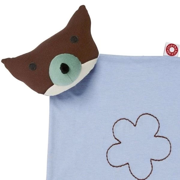 Pour les bébés dés la naissance, amour, douceur et réconfort auprés de ce Doudou Plat Renard Bleu ‘Philip’  Franck & Fischer en Coton Bio certifé Gots,… naturel et doux. Un doudou mouchoir, plat et carré fabriqué à partir d’un doux tissu Jersey Bleu, Maron, Beige et Vert… en coton bio issu de l’agriculture biologique (certifié GOTS), dont chaque angle propose à bébé un petit noeud à machouiller… De belles dimensions (30.0 x 30.0cm), doté d’une adorable bouille du très rare et protégé Renard bleu, avec de petites oreilles à secrets et un petit air facécieux. Un doudou bio Franck & Fischer pour se frotter et machouiller sans fin et accompagner bébé de partout, ensoleiller ses journées, adoucir ses nuits et consoler ses ‘petits bobos‘ de tous les jours…