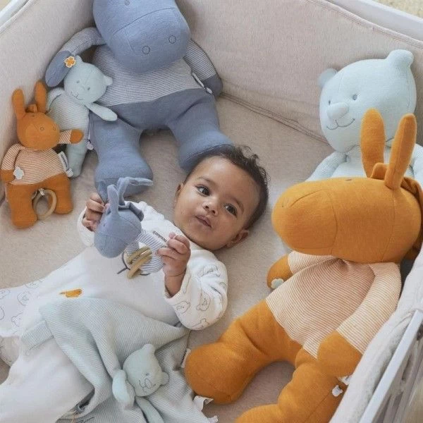 ✎ Les Hochets Attaches Tétines & Anneaux de dentition Coton Bio & Caoutchouc Âne Paco Bleu Noukie’s® détails
