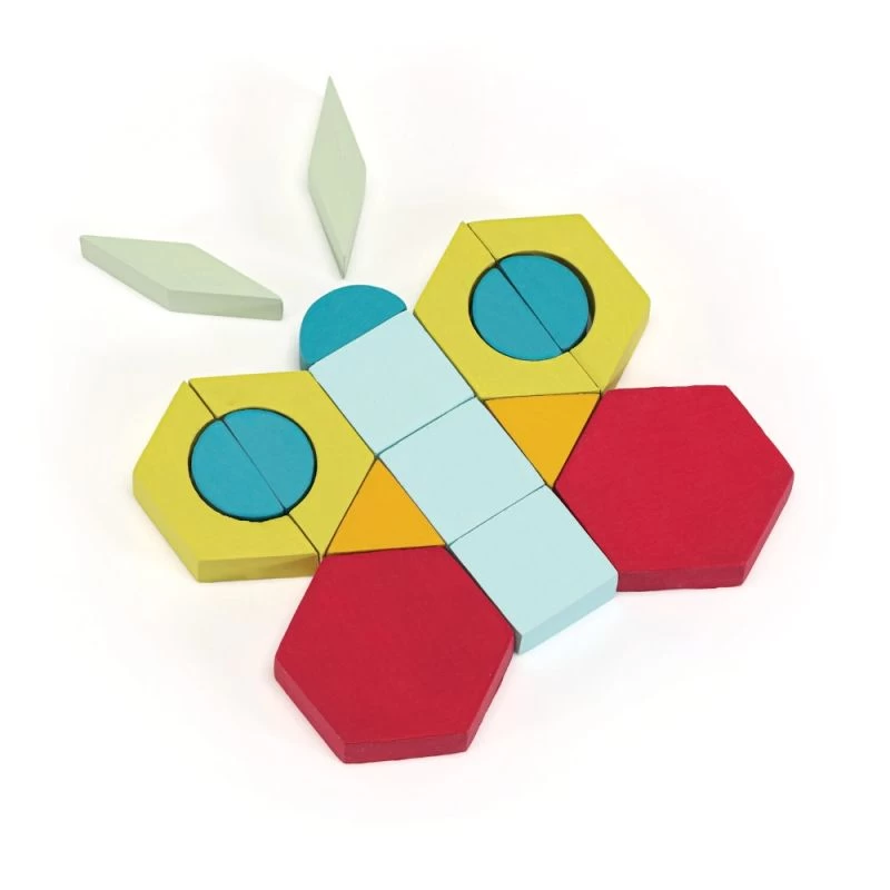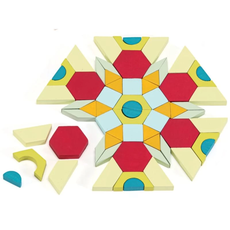 Les attrimaths sont des jeux de type puzzle de mosaïques colorées aux formes géométriques variées (triangle, losange, trapèze, hexagone, carré). Les manières de créer un jeu ou une activité attrimaths sont nombreuses, par exemple :
