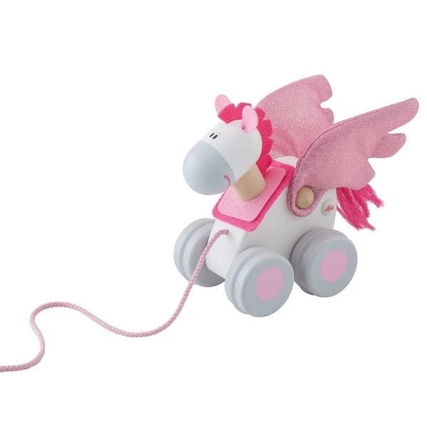 Pour les petits aventuriers de 12 mois éveil physique et émotionnel avec ce joli Cheval ailé ce ‘Jouet à trainer Cheval Pégase Rose & Blanc Sevi 1831′ qui permet de faciliter l’apprentissage de la marche, et d’oublier ses inquiétudes. Pégase est un cheval ailé divin, l’une des créatures fantastiques les plus célèbres de la mythologie grecques. Un joli petit Cheval Blancs à traîner, que nos petits écolos vont pouvoir promener partout dans la maison. Avec son mythique cheval Pégase, la marche et la recherche d’équilibre est un jeu d’enfant, distrait par son compagnon, bébé ne prête plus attention à ses petites angoisses et marche tranquillement. Un jouet ludique permettant d’acquérir et développer l’équilibre et la marche, un bon moyen de se promener partout dans la maison, et faire du ménage….Â