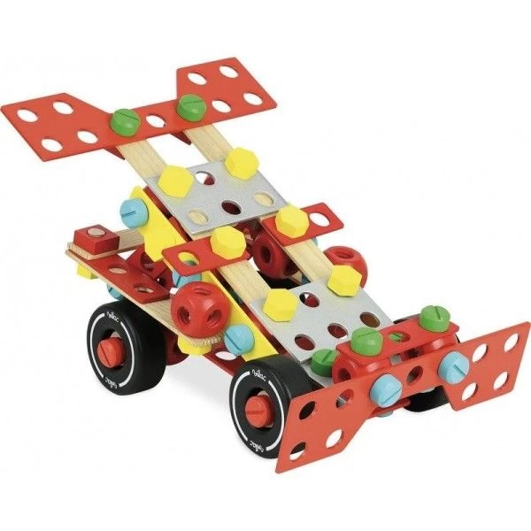 Pour les petits bricoleurs dès 48 mois, et laisser libre cours à leur imagination, éveil physique, émotionnel et bricolage avec ce Jouet de construction Super Batibloc 100 pièces Vilac®. Les petites mains de bricoleurs écolos adoreront visser, dévisser et assembler les plaques à l’aide des boulons et écrous colorés. Tiens et si j’ajoutais des roues… Les 100 pièces permettent de réaliser pas à pas 6 nouvelles constructions différentes ! Livré avec son livret de modèles à réaliser, ses outils adaptés