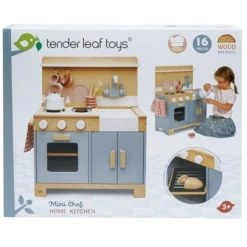 Pour les petits cuisiniers gastronomes dés 36 mois, éveil physique et émotionnel, découverte de la cuisine et imitation avec cette jolie Jouet Dînette en bois Cuisinette Mini Chef Tender Leaf Toys®… une dînette cuisinette élégante et contemporaine avec un four, 2 plaques de cuisson, un évier de majordome avec deux robinets et un placard intégré avec portes.