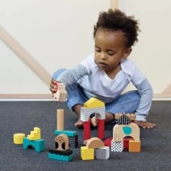 Empiler, construire, abattre et répéter. Robuste, bien conçu avec des morceaux volumineux et faciles à saisir, c’est le premier ensemble de blocs idéal pour les bébés et les tout-petits. Les formes lumineuses encouragent la créativité et le jeu libre. Avec 26 pièces de différentes formes et couleurs, il n’y a pas de limites à ce qui peut être créé..