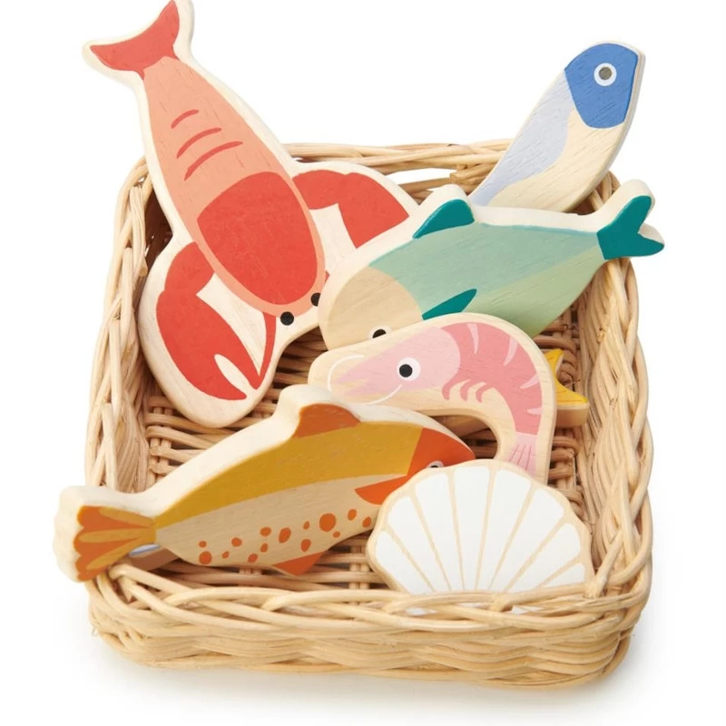 ✎ Les Jouets en bois Dinette Marchande Panier osier Poissonnier Tender Leaf Toys® détails