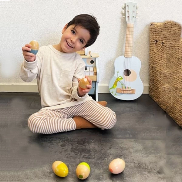 Pour les musiciens en herbe, éveil musical et émotionnel avec ce Jouet en bois Hochets auditifs Œufs de musique Groovy beats Small foot by Legler®. Cinq œufs en bois joliment décorées qui permettront aux petits mélomanes de découvrir différents sons en secouant les œufs.