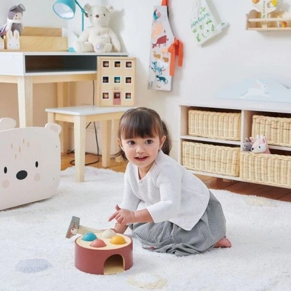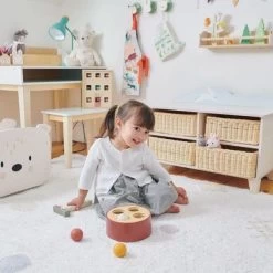 Pour les bébés écolo et amoureux de nature dés 18 mois, éveil émotionnel et physique avec cet amusant Jouet en bois Jeu de marteau Pic vert Tender Leaf Toys®. Un tronc de bois sur lequel les petits pourront frapper pour faire tomber les boules de bois joliment colorés et au faciès de petits verre… à l’aide du marteau en forme de pic vert. Ramassez les boules lorsqu’elles tombent dans le trou et recommencez. Pas facile de réussir sans se taper sur les doigts mais avec un peu d’exercice, nos petits héros de la forêt s’y retrouvent, développent dextérité et confiance. Un jouet en bois premier âge pour se dégourdir les doigts, et développer précision et dextérité dans une amusante ambiance forestière….