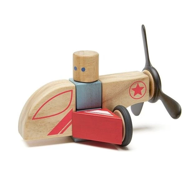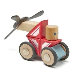 ✎ Les Jouet en bois magnétique Tegu® Set Engins de secours Skyhook ‘Stunt Team’, détail