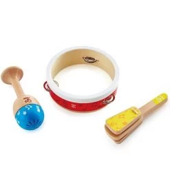 Pour les petits musiciens, à partir de 12 mois, éveil émotionnel, sensoriel avec ce Jouet en bois musical Ensemble de percussions junior Hape®. Un tambourin, une maracasse et une claquette pour commencer à prendre des rythmes, comprendre les relations de causes à effets tout en s’amusant et développer la motricité fine, la dextérité, la coordination œil-main. Un ensemble de jouets en bois idéal, ludique et créatif qui pourra certainement éveiller quelques vocations…