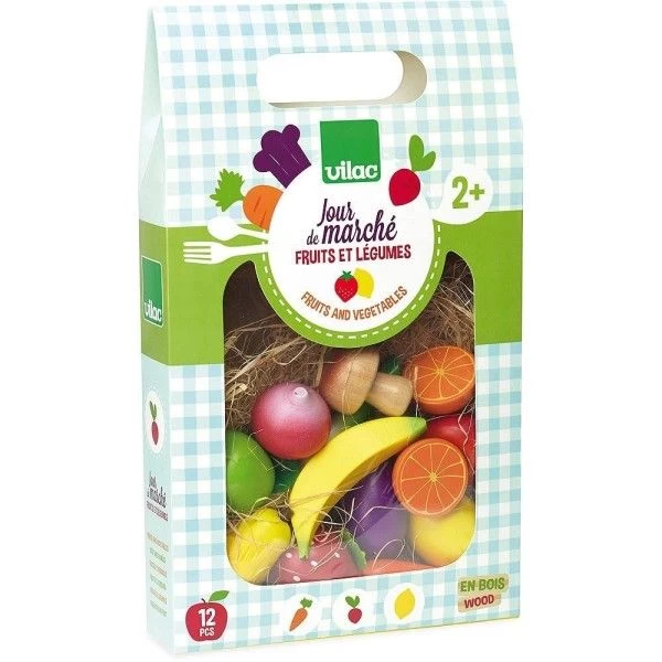 Les Jouets en bois Set de Fruits & Légumes ‘Jour de Marché’ Marchand(e) Vilac® sont réalisées avec soin et perdurent, jour après jour, année après année, naturel et durable, grâce au bois, un matériau de caractère et agréable au toucher. Chaque jouet Vilac® est conçu dans le bureau d’étude jurassien, par des designers spécialisés dans le domaine du jouet, et soucieux du détail et des belles finitions. Le bois des jouets Vilac® est choisi avec soin en fonction des contraintes techniques du produit, essentiellement des bois de hêtre, du pin et du buis. Simples, et indémodables, durables et naturels, les jouets Vilac® sont écologiques