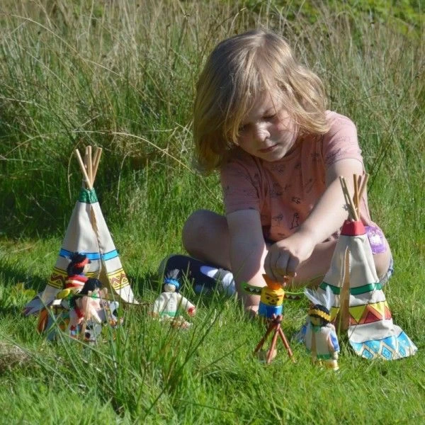 ✎ Les Jouets en bois Set Tipis (maisons) de Poupées Camp Indiens 14 pièces Goki® détails