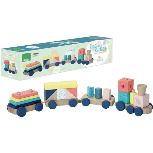 ✎ Les Jouets en bois Train de cubes Sous la canopée Vilac® se composent et sont: