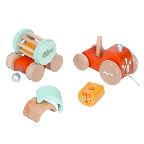 ✎ Les Jouets à tirer Promeneur Tracteur Chat Hochet Zigolos Janod  détails