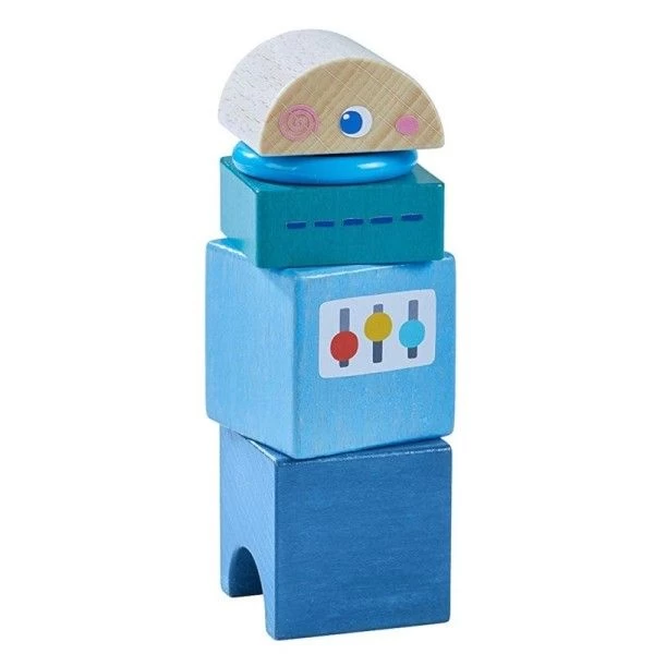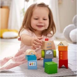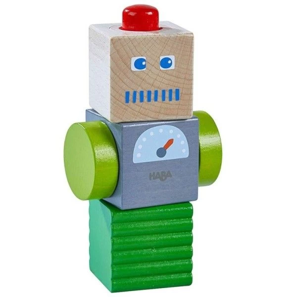 ✎ Les Jouets en bois Blocs Découverte Amis Les Robots HABA® se composent et sont: