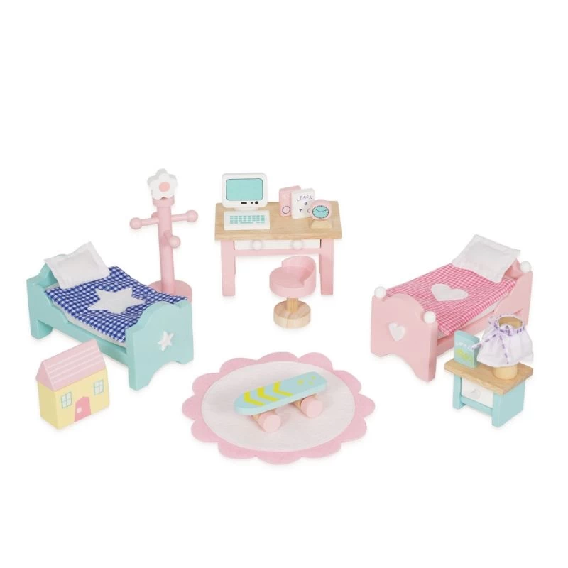 Pour les petits à partir de 36 mois, éveil émotionnel et imagination avec ce magnifique Jouets en bois Maison de poupées Chambre d’enfants Daisylane Le Toy Van®. Un ensemble de mobilier de chambre d’enfants aux douces couleurs pastels… Que de belles histoires à s’inventer….