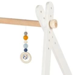 Pour les petits rêveurs dés 6 mois et pour développer attention et dextérité, éveil physique et émotionnel, ce superbe Portique d’activité en bois Géométrie Ocre Heimess® est très animé et coloré. Un portique d’éveil avec ses 3 hochets d’activités et son décor géométrique… le tout suspendu au trapèze pour permettre à bébé de stimuler ses petits muscles en découvrant les mouvements, les tintements des hochets, et les autres bruits produits par le mouvement des pièces qui le compose. Tout est fait pour stimuler bébé dans son apprentissage et son développement. De la position allongée, bébé va rapidement essayer de se redresser motivé par les anneaux de bois situés sur les côtés, les différentes formes et couleurs et surtout notre amusant petit écureuil. Pour rester à bonne distance des petits doigts, le portique dispose de 6 positions permettant de baisser et élever le trapèze.