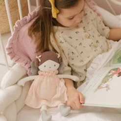 ✎ Les Poupées chiffon coton bio Angelina robe mousseline Rose 33cm Bonikka® détails