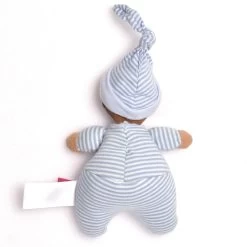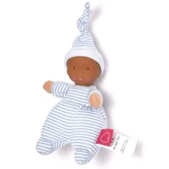 Pour les bébés bio et écolos dés les premiers mois, éveil confort et réconfort avec cette petite poupée de chiffons et caoutchouc couleur bleu clair rayé, surplombé d’une adorable petite tête douce visage au teint halé, en caoutchouc naturel et aux traits peu marqués pour s’accommoder de l’humeur quotidienne de bébé. Une adorable première petite Poupée de chiffon premier âge bleue rayée teint halé 22 cm tête caoutchouc naturel Bonikka. Une petite poupée premier âge tendre, saine et naturelle idéale pour accompagner bébé tout au long de la journée et pour adoucir ses moments difficiles. Fabriqué en coton et en caoutchouc Naturel issu d’une culture durable, ce jouet premier âge aux formes et textures douces permet à bébé de bien le saisir, de même que les différentes appendices offrent de quoi mâchouiller. Une poupée de coton et caoutchouc naturel, écologique, solide et durable qui saura résister aux jeux, aux léchages et mâchouillages et aux câlins nécessaires à la découverte du monde.