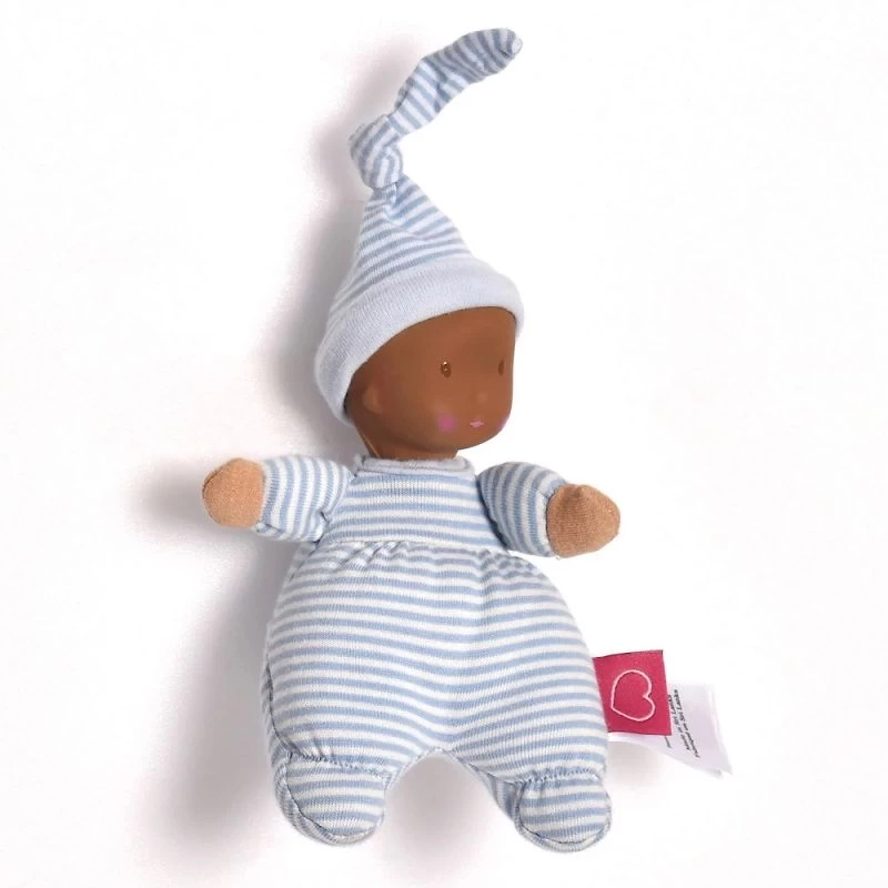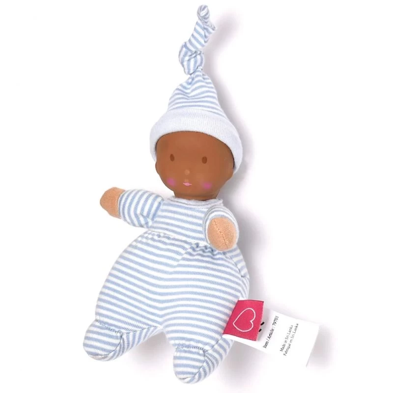 Les Poupées de chiffon premier âge bleue rayée teint halé 22 cm tête caoutchouc naturel Bonikka sont réalisés avec soin. Comme toutes les poupées de coton, et poupons coton -caoutchouc Bonikka®, elles sont fabriquées à la main, à partir de coton naturel et pour les modèles avec le tête en caoutchouc, il s’agit de caoutchouc naturel de l’arbre Hévéa issu de l‘Agriculture responsable.