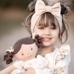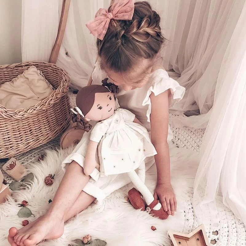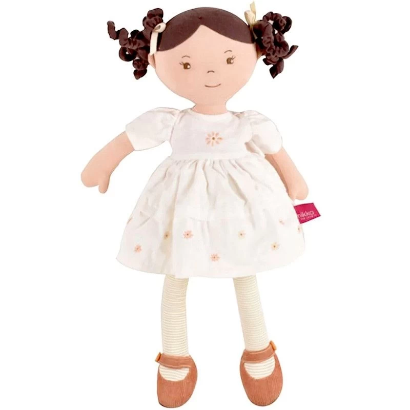 La poupée de chiffons Cecilia est un poupée en tissus souple et porte une belle robe en lin crème entièrement naturel avec des chaussures marron assorties, des collants crème et des rubans de cheveux crème. La robe de la poupée Cecilia est amovible pour un nettoyage facile, ou vous pouvez l’habiller avec une tenue différente pour une occasion spéciale.
