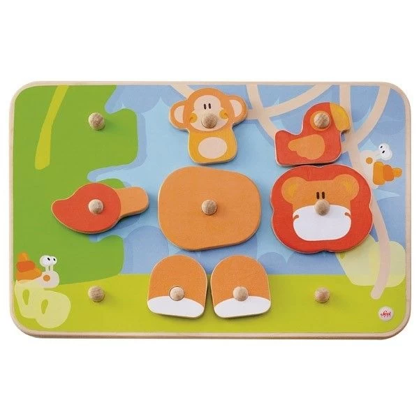 Pour les petits dés 24 mois, Eveil physique et intellectuel en partant à la découverte des fabuleux animaux de la Savane Africaine avec ce joli et astucieux Puzzle à boutons Créatif Animaux de la Savane 30 pièces Sevi 1831. 30 pièces à assembler sur un fond de paysage, et reconstituer les pièces des hommes et animaux d’Afrique sans se tromper… Lion, Eléphant, Zèbre, Hippopotame, crocodile, Singe, Perroquet et imaginer de tout mélanger au grés de sa créativité. Un joli jeu pour développer l’imagination, la dextérité et pour acquérir de bien belle connaissances sur les animaux et Habitants de ce beau continent.