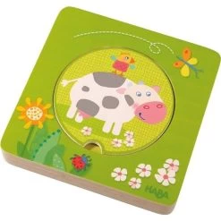 Pour les petits, dés 18 mois, ce Puzzle en Bois les Amis de la Ferme HABA®  met en scène les animaux de la ferme autour d’un petit puzzle destiné à favoriser la reconnaissance des couleurs, les tailles, et les animaux de la ferme. Trouver les couleurs correspondant à chaque animal, nommer les animaux, prendre conscience de la taille différente des disques…. Un puzzle intelligent pour se dégourdir les doigts, et les méninges!!