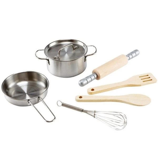 ✎ Les jouets Set du Chef Casseroles Métal & Bois dinette Hape® détails