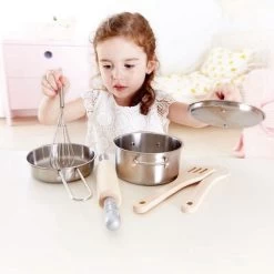 Pour les petites et petits marmitons à partir de 36 mois, éveil émotionnel avec ce magnifique set Jouet Métal et bois Set du Chef Casseroles Métal & Bois dinette Hape®, … pour cuisiner bio, et servir de fabuleux repas à ses parents et à ses amis. Un jouet idéal pour l’enfant, lui permettant de développer l’imagination par les jeux de rôles et d’imitations, permettant de valoriser sa personnalité, son identité sexuelle et prendre conscience de son identité.