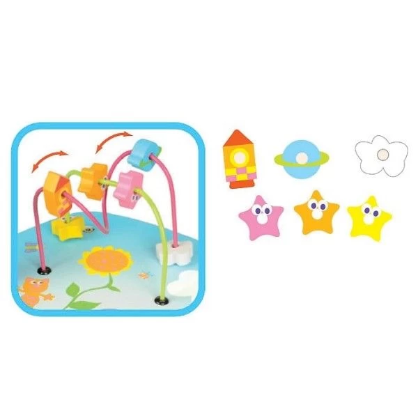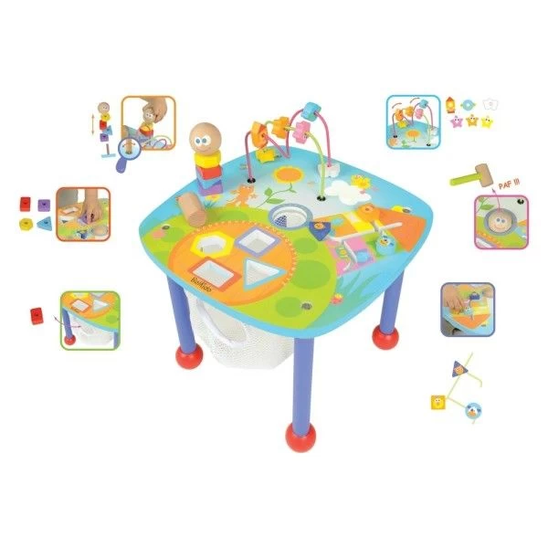 Pour les petits des 24 mois, éveil visuel et sensoriel  en douceur et en couleur avec ce magnifique ensemble activité. Une table d’activité pour bébé amoureux de nature et de grands espaces. Avec ce jouet en bois Table Multi Activités en bois ‘Mon Jardin’ Boikido nos petits aventuriers pourrons se dégourdir doigts et méninges, tout en développant leurs aptitudes de concentrations sur le zig zag, looping, la boite à formes et ses labyrinthes à formes. Pour découvrir les premières formes, les couleurs et developper tout doucement la motricité fine, et developper son imagination.