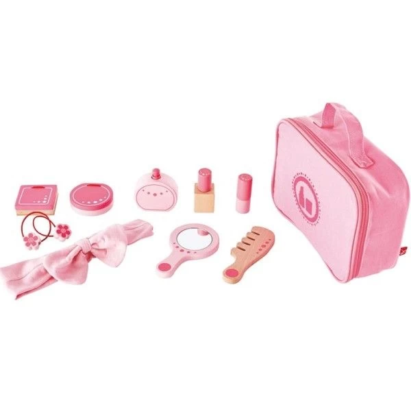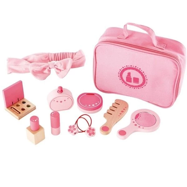 Pour les petites princesses dès 36 mois, imitation et émotion avec ce joli set de beauté et maquillage Hape, pour apprêter ses poupées, ses amis et se faire toute belle ….Valisette Jouet Set Beauté & Maquillage Hape® composé d’une petite valise en toile Rose, d’un miroir, d’un peigne, d’un bandeau, d’un attache cheveux, d’un parfum, d’un rouge à lèvres, d’un vernis à ongles, d’un étui à poudre et d’un coffret de maquillage . Les jouets d’imitations permettent de s’approprier des univers, de comprendre et s’identifier à travers le jeu de rôle.